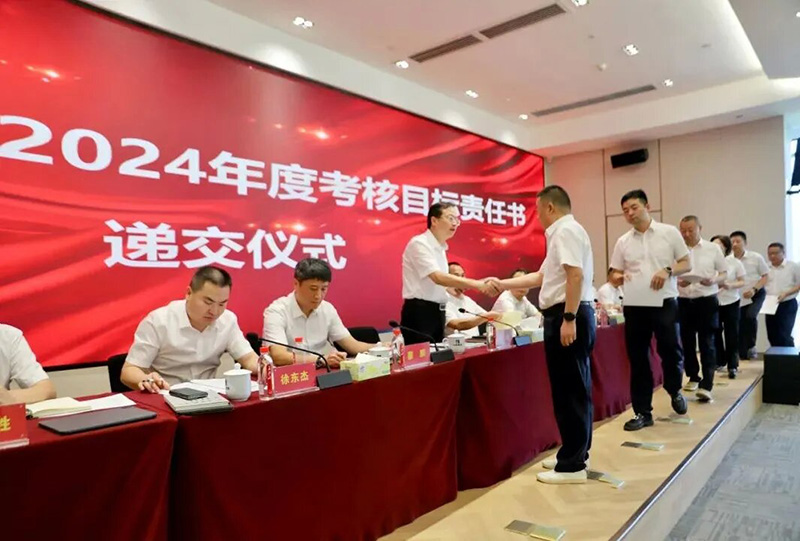 ??? 會(huì)上,集團(tuán)新選聘到位的9家二級(jí)經(jīng)營(yíng)單位主要負(fù)責(zé)人向集團(tuán)黨委書(shū)記、董事長(zhǎng)胡磊遞交2024年度考核目標(biāo)責(zé)任書(shū)。