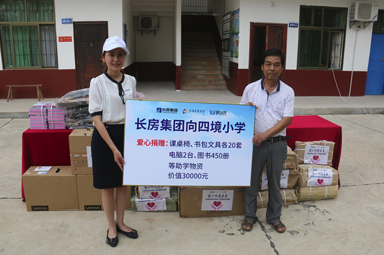 愛心傳遞,夢想飛揚。2018年8月23日,在長沙市青少年發(fā)展基金會的指導(dǎo)下,長房集團“藍絲帶”愛心傳遞基金活動走進湘潭縣青山橋鎮(zhèn)四境小學(xué),本次活動由湘潭市時代置地有限公司協(xié)辦,為貧困學(xué)生們帶來了價值30000元的愛心課桌椅、文具和圖書等愛心助學(xué)物資和一場生動活潑的兒童成長心理輔導(dǎo)課程。湘潭市住房和城鄉(xiāng)建設(shè)局領(lǐng)導(dǎo),長房集團黨群工作部負責(zé)人及湘潭市時代置地有限公司領(lǐng)導(dǎo)等出席捐贈儀式。