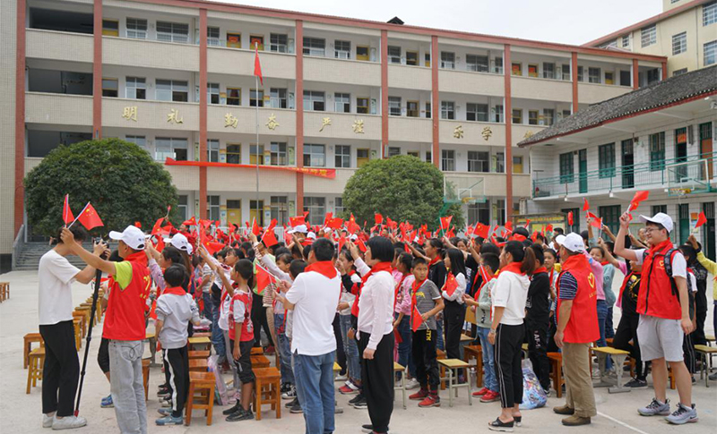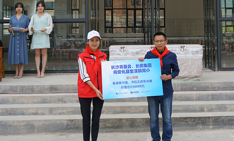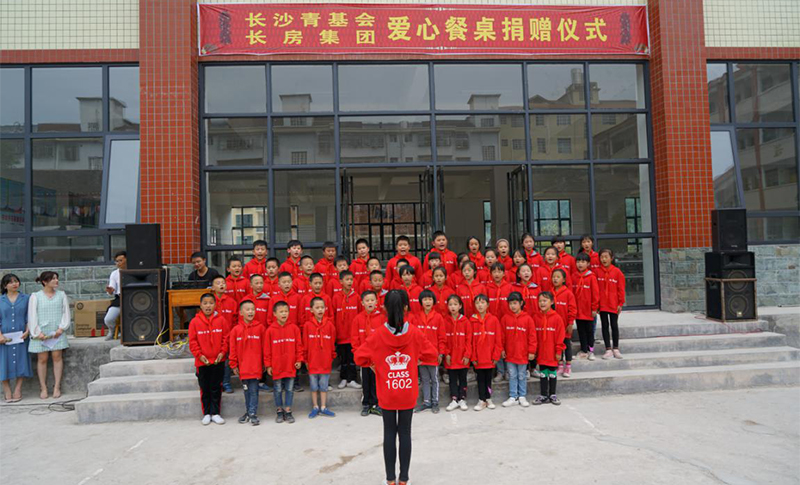“金色的駝鈴,叮當叮當,小駱駝帶著它走向遠方,追趕著春天的腳步叮當,走向綠色的希望?!敝赡矍宕嗟母杪曉诎不h奎溪鎮(zhèn)完全小學校園里響起,融化著眾人的心。2019年9月25日,長沙青基會與長房集團共同舉行的“大愛奎溪完小、情暖校園食堂”愛心餐桌椅捐贈儀式在安化縣奎溪鎮(zhèn)完小舉行。儀式現(xiàn)場,長房集團“藍絲帶”愛心傳遞基金向?qū)W校捐贈了70套餐桌椅,并給學校30名貧困學生帶來了書包、文具等新學期禮物,本次愛心捐贈價值60000元。長房集團黨群工作部負責人,長沙市青少年發(fā)展基金會辦公室負責人,長房集團十余名青年志愿者,安化縣教育基金會、奎溪鎮(zhèn)政府、奎溪鎮(zhèn)中心學校的領導及奎溪鎮(zhèn)完小師生代表出席了捐贈儀式。