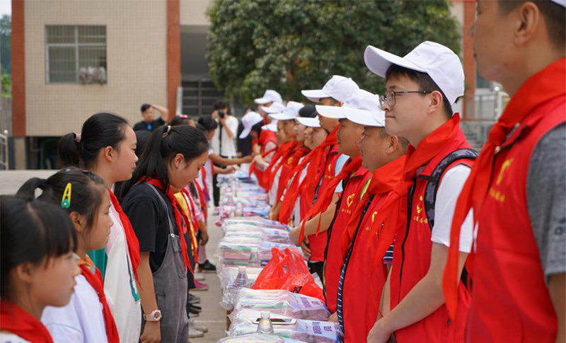 儀式現(xiàn)場,孩子們給全體志愿者及到場嘉賓系上了鮮紅的紅領巾,志愿者隨后向30名貧困學生送出了集團精心準備的書包、文具套裝、可洗水彩筆等學習用品,孩子們抱在懷里,甜在心里,愛不釋手。集團黨群工作部負責人表示本次捐助是集團一直踐行的初心,要求孩子們要以奎溪鎮(zhèn)完小為人生賽跑的起點,追逐遠大的夢想,并對孩子們提出三點希望:一是希望孩子們從小樹立遠大理想;二是希望孩子們熱愛偉大祖國;三是希望孩子們要懂得感恩,努力學習,回饋家鄉(xiāng)和社會。
